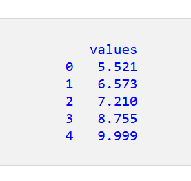 df['values'].round(decimals=3)したがって、完全な Python コードは次のようになります。